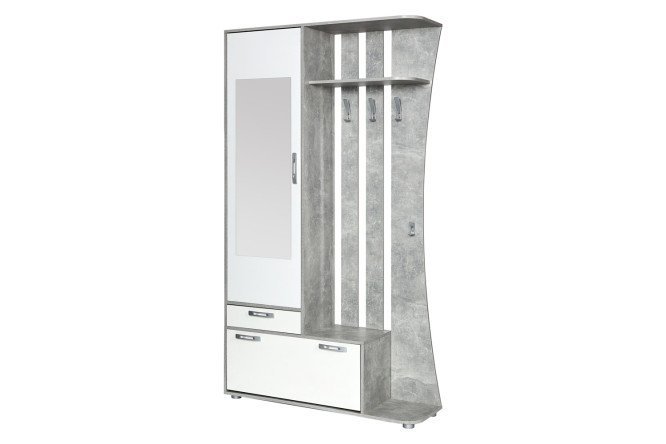 The Como hallway has everything you need – a drawer for small items, a cabinet for shoes, a spacious closet with a mirror, hooks for outerwear and a shelf for hats, and you can even sit on the ledge. Hallways are produced in both left and right versions.