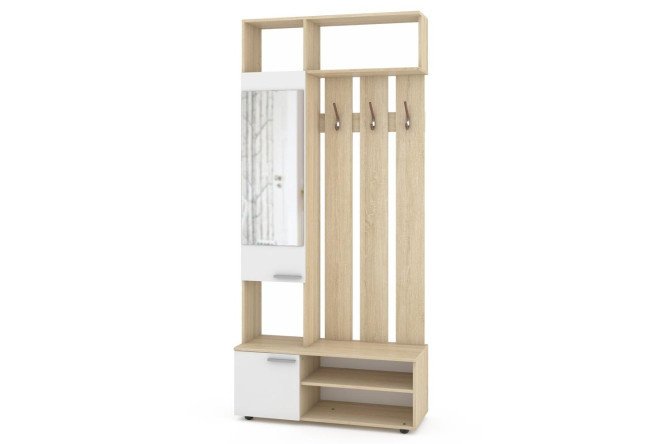 Hallway Milan is an ideal choice for small spaces. It is compact and functional, so it is great for storing things and shoes. The hallway is equipped with hooks for coats, a storage box, shelves for hats and umbrellas, a shoe compartment and a large mirror.