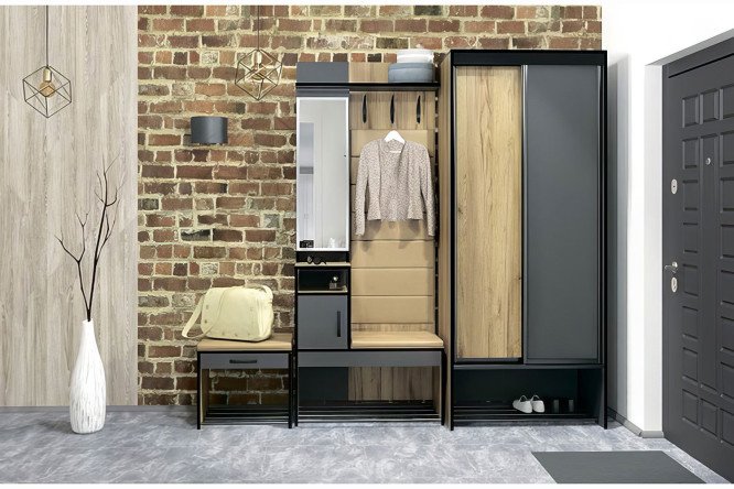 craft oak gold, dark gray, black, beige