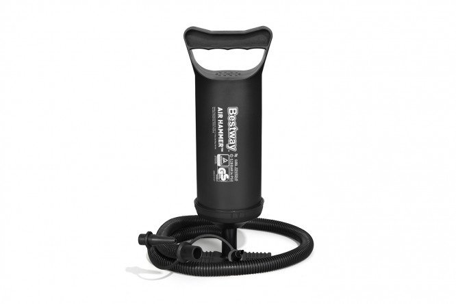 Bestway hand pump for inflating inflatable products. It has a double-action system: it inflates inflatable products during both forward and reverse strokes of the piston. The pump comes with a flexible hose and 3 nozzles for almost all types of inflatable products. The pump has a comfortable foot rest. Suitable for all Bestway and Intex inflatable products. Air chamber volume: 2×860 cubic meters. cm. Pump height: 30 cm. Flexible extension hose; Adapter nozzles – 3 pcs.