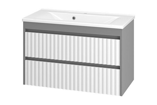 Hanging cabinet Balaton 90 BAL-06090-01-012Ya with 2 drawers 89.6 cm, frame color gray, facade white, gray