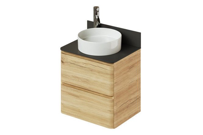 The cabinet with countertop is suitable for any table-mounted sink without a hole for a mixer with one of the dimensions of 370 mm or a diameter of no more than 400 mm.