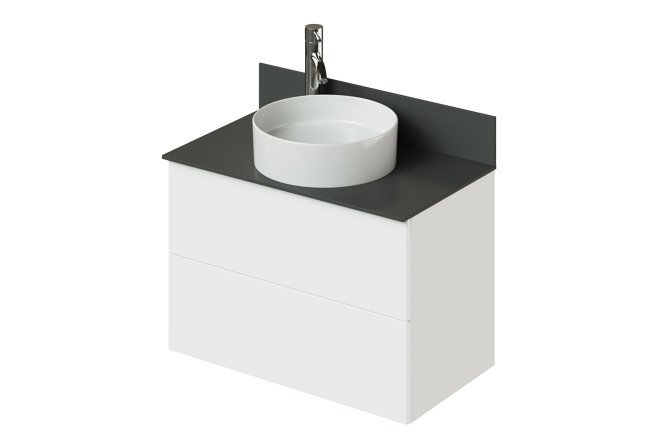 The cabinet with countertop is suitable for any table-mounted sink without a hole for a mixer with one of the dimensions of 360 mm or a diameter of no more than 400 mm.