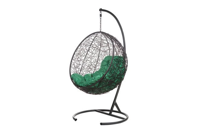 The hanging chair “Kokos” has an original design and a bright combination of green and black colors. This option is perfect for modern interiors.