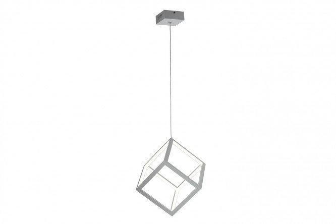 A luminous cube suspended on a thin silver cable is an original solution for a modern interior decorated in high-tech style. It seems that the polyhedron floats freely in the air, filling the space with soft, diffused light that is pleasing to the eye. The base of the model is made of painted metal, the shade is made of optical polymer. Long-life LEDs built into the design are used as a source. The color temperature of the radiation is 4000 K, which corresponds to natural white light. It is possible to adjust the height of the cable.