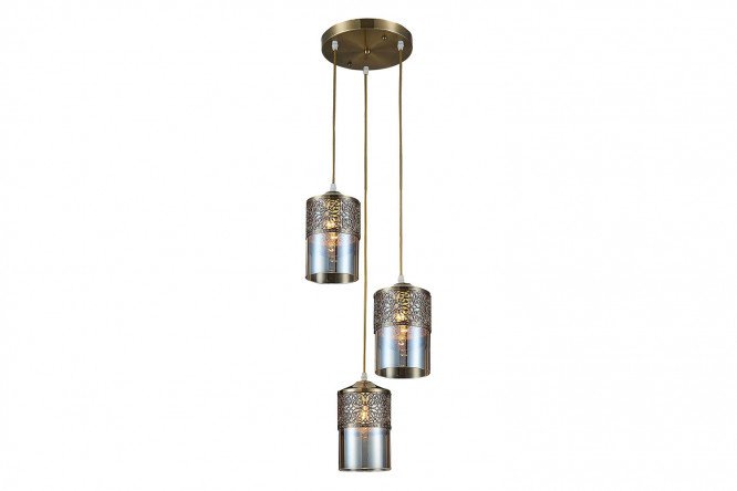 The Emir pendant lamp will come in handy in an interior based on oriental style. The model organically intertwines discreet luxury finishing and thoughtful functionality: cylindrical shades are located at different heights, which makes the lighting more uniform and comfortable for the eyes. Beige glass diffusers are decorated with overlays with an openwork pattern based on a rhythmic repetition of the classic ornamental motif – the Moroccan quatrefoil.
