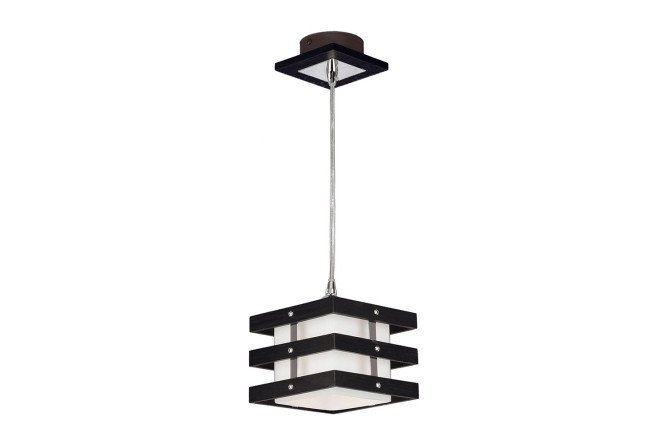 The Kyoto pendant lamp is an original lighting option for hallways, kitchens and offices. The design consists of a glass shade placed in a disassembled frame of three interconnected squares. The combination of white glass and wenge wood looks impressive and stylish. The luminaire is designed for installation of lamps of different types. The metal base ensures secure fastening.
