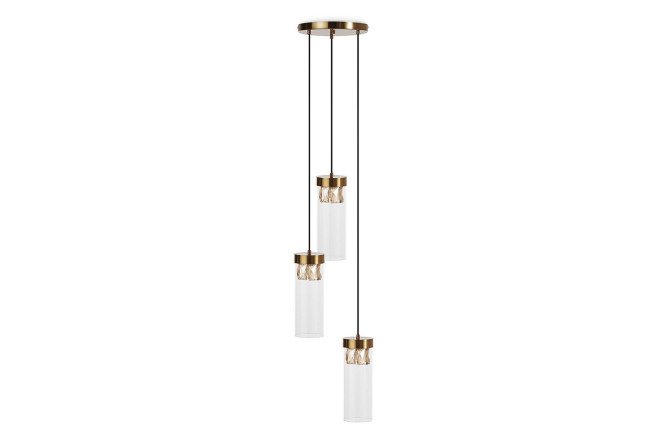 The unique design of the MAGNUS Trio pendant lamp will add sophistication to your interior. Transparent glass shades, complemented by unusual amber-colored pendants, gently refract and diffuse light. Height adjustment allows you to choose the optimal length of the suspensions, customizing the lighting to suit your needs. Assembly of the lamp is simple, and thanks to the universal mount it can be easily and quickly installed on a ceiling of any design.