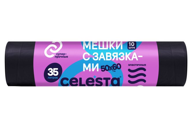 Thick Celesta plastic bags are indispensable helpers in the home; they are convenient for collecting and disposing of both food waste and household garbage. It is convenient to insert the bag inside the bucket to keep it clean. After filling, the neck can be tightened and tied; in this form, the garbage will be securely packed and will not fall out of the bag, dirtying the floor. The tied bag is convenient to carry to the trash container.