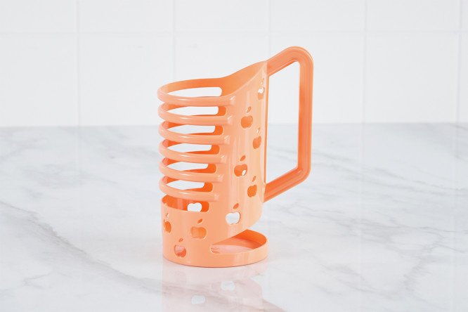 A plastic bottle holder (with a maximum bottom size of 9 cm) is a useful tool for the kitchen. Plastic and glass bottles with milk, juice and other liquids are placed in it for more convenient use and storage. The product is especially useful for containers with vegetable oil; they are often slippery, because a few drops always flow from the neck, sliding down the walls. To avoid leaving greasy stains on the countertop or cabinet shelf and to avoid dropping a bottle of oil on the floor, it is best to place it in a holder.