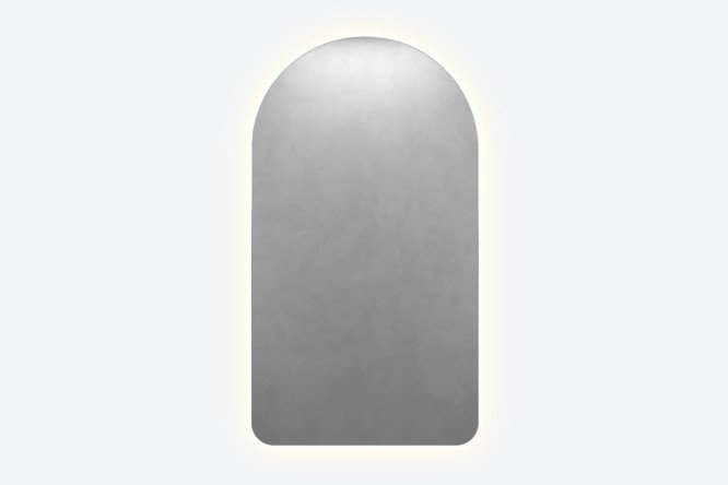 Frameless arched mirror with contour (back) neutral lighting, light 4000K. The substrate is made of high-quality MDF, the LED strip is protected by a matte light diffuser from dust and moisture. There is a 220W output for connecting to the network (12V backlight power supply), turning on the backlight from a switch on the wall or from an outlet.