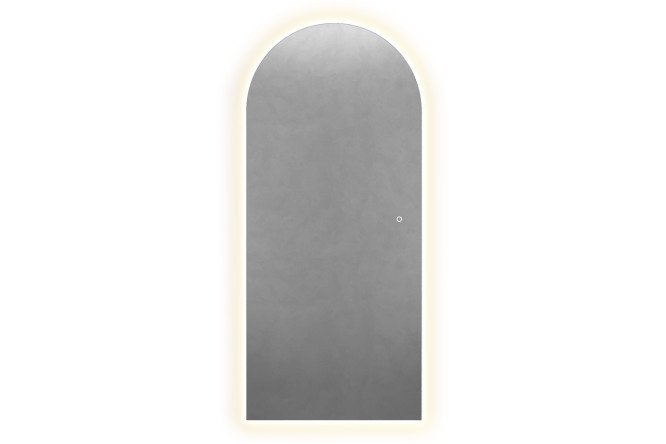 Arkis is a frameless arched mirror with contour warm lighting, created using advanced technologies, light 3000K. The backlight substrate is made of white laminated MDF, the LED strip is protected from dust and moisture by a matte light diffuser. The shape of the arch will create a feeling of smoothness and weightlessness. The mirror has a convenient universal mount for placing the sensor on the right or left (100 mm from the edge, in the center of the mirror). There is a 220W output for connecting to the network, the backlight is turned on by a touch button on the mirror. Fasteners included.