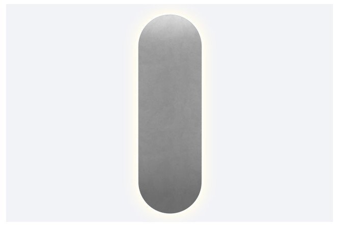 Frameless oval (capsule) shaped mirror with contour (back) neutral lighting, light 4000K. The substrate is made of high-quality MDF, the LED strip is protected by a matte light diffuser from dust and moisture. There is a 220W output for connecting to the network (12V backlight power supply), turning on the backlight from a switch on the wall or from an outlet.