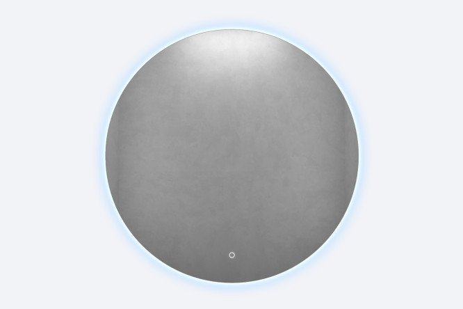 Frameless round mirror with contour (back) cold lighting, light 6000K. The substrate is made of high-quality MDF, the LED strip is protected by a matte light diffuser from dust and moisture. There is a 220W output for connecting to the network (12V backlight power supply), turning on the backlight from the touch button on the mirror.