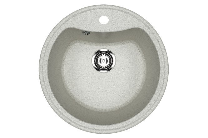 ULGRAN U-601 is a classic round kitchen sink with a hole for a mixer. This sink is installed in a cabinet with a width of 50 cm. The package includes a drain fitting with a corrugated pipe, a technical data sheet and a warranty card. It is possible to install the ULGRAN dispenser to the left of the mixer – in this case, the consumer makes the additional hole independently using a Forstner cutter (not included in the package and purchased separately).