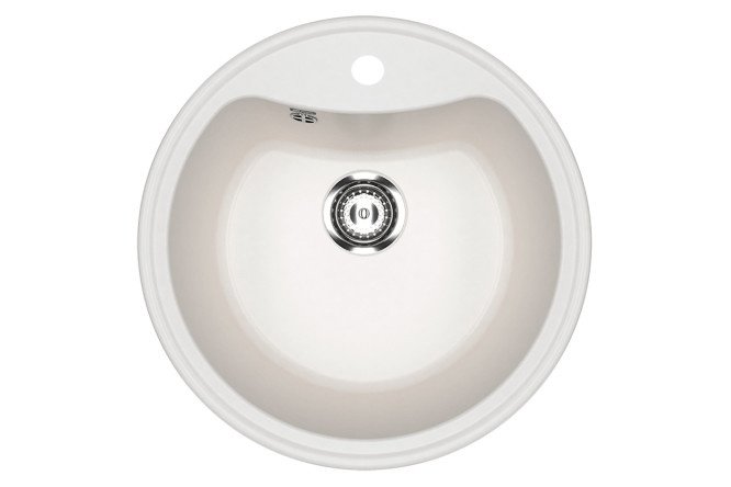 ULGRAN U-601 is a classic round kitchen sink with a hole for a mixer. This sink is installed in a cabinet with a width of 50 cm. The package includes a drain fitting with a corrugated pipe, a technical data sheet and a warranty card. It is possible to install the ULGRAN dispenser to the left of the mixer – in this case, the consumer makes the additional hole independently using a Forstner cutter (not included in the package and purchased separately).