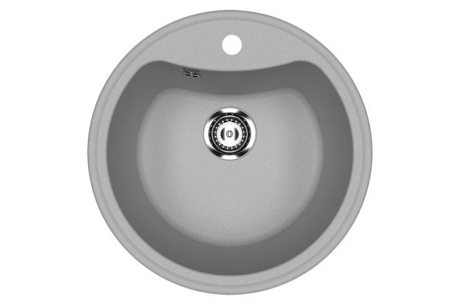 ULGRAN U-601 is a classic round kitchen sink with a hole for a mixer. This sink is installed in a cabinet with a width of 50 cm. The package includes a drain fitting with a corrugated pipe, a technical data sheet and a warranty card. It is possible to install the ULGRAN dispenser to the left of the mixer – in this case, the consumer makes the additional hole independently using a Forstner cutter (not included in the package and purchased separately).