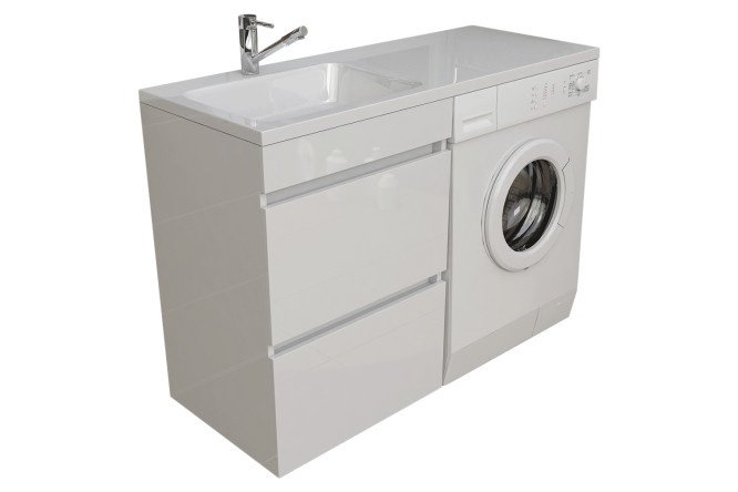 Jersey floor cabinet above the washing machine 57.5 cm, frame color white, facade white