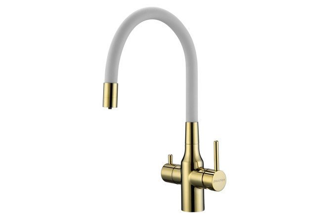 The PAULMARK Salix kitchen faucet allows you to adjust the direction of the water flow thanks to the flexible spout. The spout can be rotated 360°, which significantly expands the possibilities of using the product. The model is suitable for separately obtaining tap and drinking water from a filtration system – each has its own lever switch. The mixer is made of non-corrosion material – brass parts guarantee a long service life for the mixer. The type of fastening of the product is universal, it is easy to install on a countertop or sink.