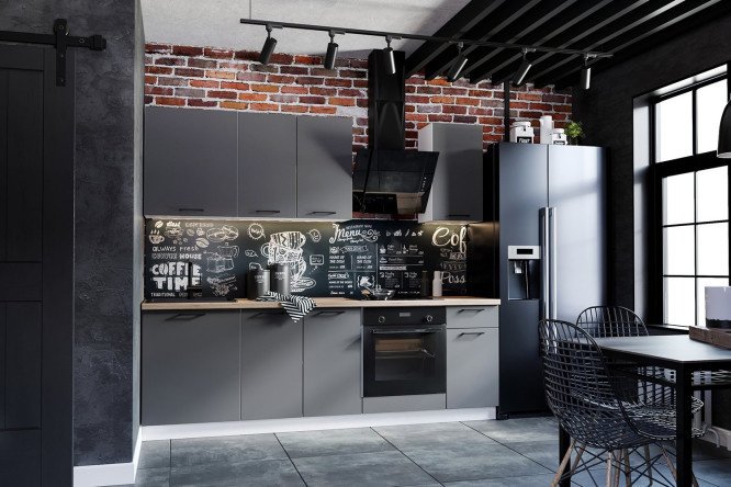 Kitchen set Chloe 240x214x60 cm, frame color white, facade Marengo silk