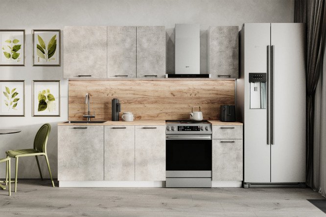 Kitchen set City 180x214x60 cm, frame color white, facade light concrete
