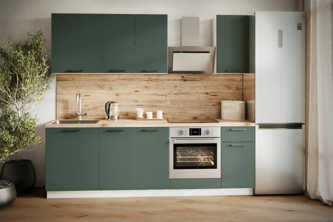 Kitchen set City 240x210x52.6 cm, frame color white, facade avocado