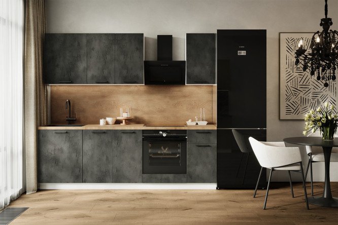 Kitchen set City 240x210x52.6 cm, frame color white, facade dark concrete