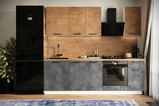 Kitchen set City 240x210x52.6 cm, frame color white, facade natural Irish oak, dark concrete