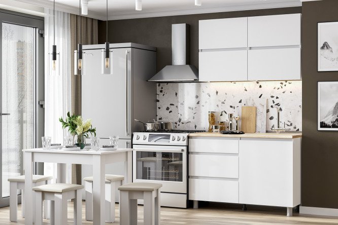Kitchen set Tokyo 1.2 m 120×214.2×60 cm, frame color white textured, facade white textured