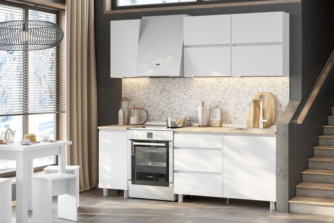 The package includes: – wall cabinet 60 cm – 2 pcs. – wall cabinet 40 cm – working table 120 cm – working table 40 cm – tabletop (thickness 26 mm) – 2 pcs., cabinets can be swapped Upper cabinets: Height – 71.6 cm Depth – 29.6 cm Lower cabinets: Height of lower cabinets – […]