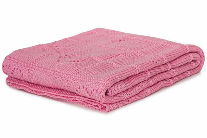 Blanket for boys and girls made of hypoallergenic acrylic with a textured pattern in the shape of hearts. The blanket is packed in an individual tube bag made of high-quality Oxford material.