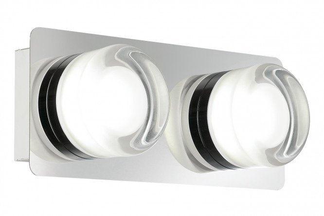 The Ortega LED sconce has an attractive design due to the shape of the shades and the chrome base, which reflects part of the light. Ortega will fit perfectly into a small bathroom as a ceiling light or sconce. Protected according to IP44 standard.