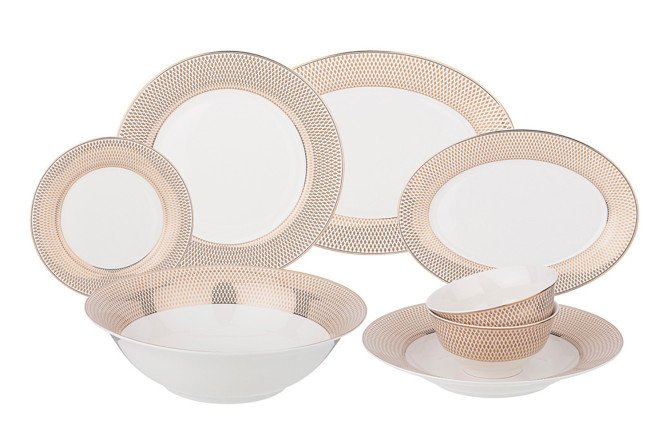 The service items are made of high-quality glazed porcelain. Using such utensils brings aesthetic pleasure. In addition, it is practical, easy to clean, does not change the taste of food, and does not absorb odors and dyes.