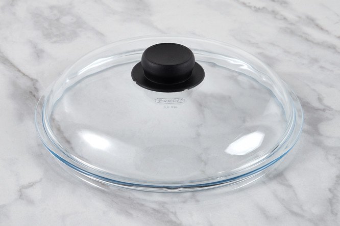 The High universal lid is suitable for pots, frying pans, cauldrons and for protecting food placed on a plate from airing. It is made of tempered borosilicate glass. This durable material is highly resistant to mechanical damage, so even after a long time the surface will remain completely transparent. The model can withstand temperatures from -40 to +300°C. The comfortable handle does not heat up during cooking, so there is no need to use an oven mitt. There is a small recess on the edge of the product to release steam. The lid can be washed either by hand or in the dishwasher.