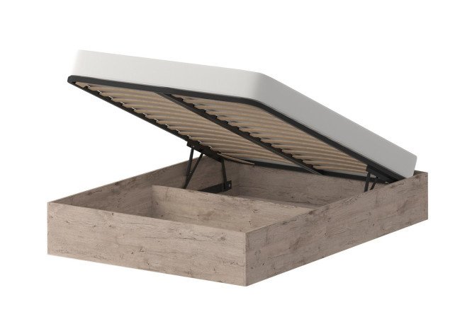 The product is a full-fledged sleeping place with a base for a mattress, a lifting mechanism and a spacious niche for storage. The mattress base in the model is collapsible, the gas lift type lifting mechanism provides ease of use and convenient access to the niche below. A large box can be used to store items that are rarely used. The frame for the Sorento bed is made of durable chipboard laminated with oak wood, which guarantees the reliability of the entire structure. Suitable for a bed without a Sorento lifting mechanism.