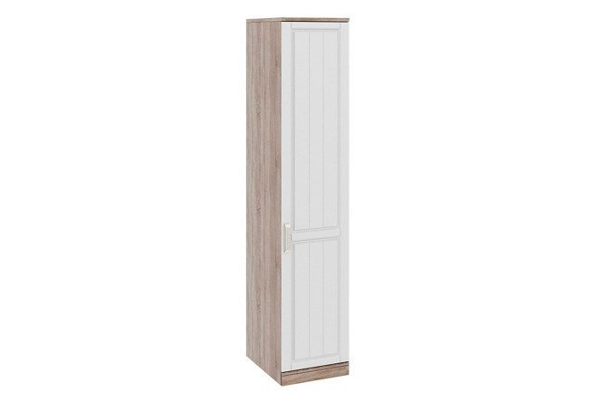 The Provence linen closet features a design inspired by traditional Provençal furniture, a simple peasant setting where functionality comes first. The surface in such antique cabinets was sometimes left untreated, revealing the natural beauty of the wood – this is what the body of this model imitates. At the same time, the light door looks elegant, although it seems to have been knocked together by a skilled craftsman from several painted boards. The handle in the form of a stylized metal bracket emphasizes the fit of the image. Behind the hinged door there are 5 shelves. The shelves are supplied complete with the cabinet.