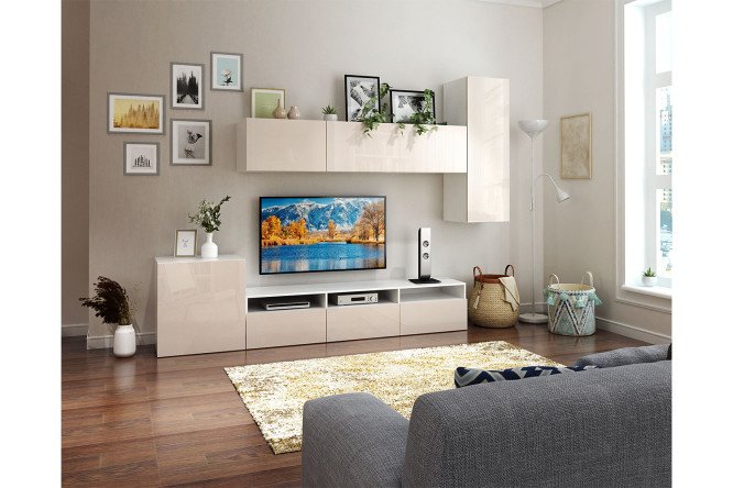 Living room Oscar Amika with push-to-open cabinet, white/cashmere gloss