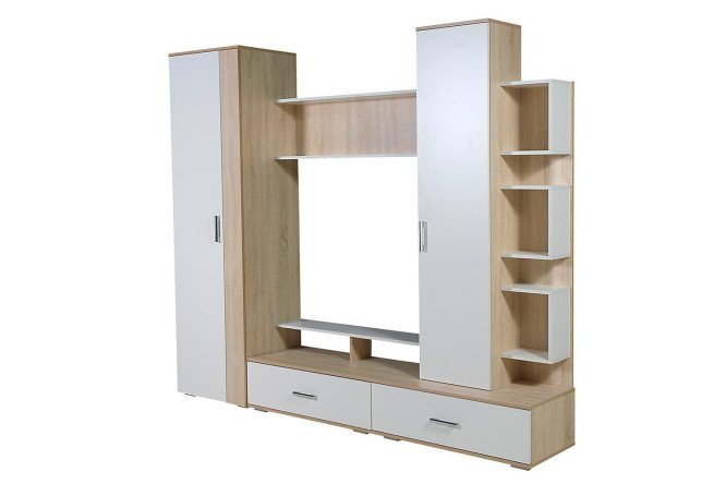 The Dallas living room is a set of furniture for a modern apartment, created in a stylish and sophisticated color scheme and with an extraordinary design design. You can combine this set with any furniture, both light and dark in color, creating unique interior compositions in your living room. This set is equipped with plenty of storage space, a classic narrow wardrobe, a low bedside table for installing a TV, and shelves for souvenirs and photographs. The Dallas set was created for connoisseurs of modern elegant style and those who prefer to combine beauty and practicality in the interior.