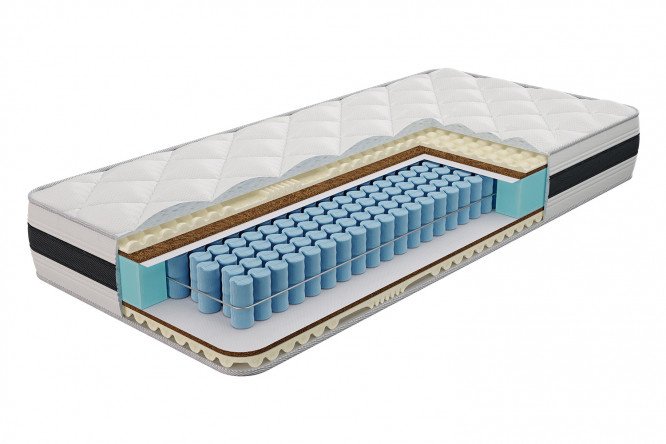 The double-sided orthopedic mattress Sofia of medium hardness contains zonal latex – a natural material that gives the mattress softness, elasticity and increases the level of comfort. This filler has zones of different relief – for each part of the body. It has a pleasant micro-massage effect and perfectly relaxes the body after an active day. A layer of coconut coir is needed to give the mattress rigidity. This is a completely natural material – it does not cause allergies and resists the accumulation of harmful organisms.