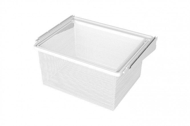 Baskets on a retractable frame allow you to complement any of the ready-made sets of the Assemble Yourself wardrobe system. The frame is equipped with built-in roller guides. The baskets are made of wire or metal mesh and have three heights – 9, 19 and 29 cm. The load on each basket is no more than 15 kg.