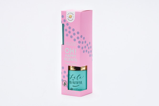 Mikado diffuser oh! with the aroma of “strawberry, coconut, peach, cream”, material glass, aromatic oil, fiber.