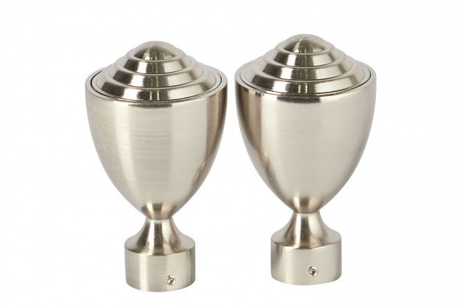 Sigma tips are easily and simply installed on the ends of the curtain rod. They will serve as stops for curtain strips and rings, preventing the curtains from sliding down, and will give the window opening a completed look. Products made in the shape of a cup will suit almost any interior style – from classic to modern. Thanks to their laconic design and discreet color scheme, the finials will not compete with the curtains, but will only unobtrusively emphasize their beauty. The material used is durable metal with a protective and decorative coating of an attractive shade.
