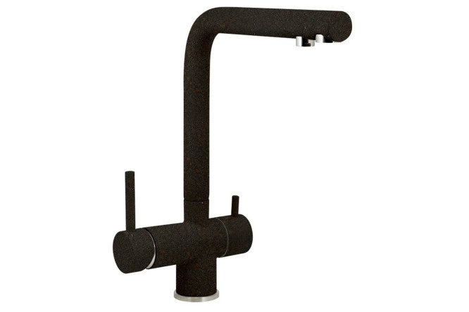The LAVA SG14 mixer will be appreciated by fans of stylish and technological devices. A brass two-spout faucet with a ceramic cartridge allows you to smoothly regulate the pressure and temperature of tap water using one of the rotary switches. The second lever turns on and off the supply of drinking water from the connected filter. This system is very convenient – you don’t have to think about how to pour filtered water into a kettle or pan.