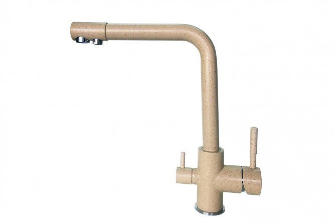 The LEX Biferno mixer combines high functionality and impressive appearance. It will look great in any modern style kitchen. The model features a high swivel spout, convenient levers for quick and comfortable control, as well as an additional outlet for drinking water. The main structural elements are made of brass with quartz coating; a 40 mm ceramic cartridge is used as a working element.
