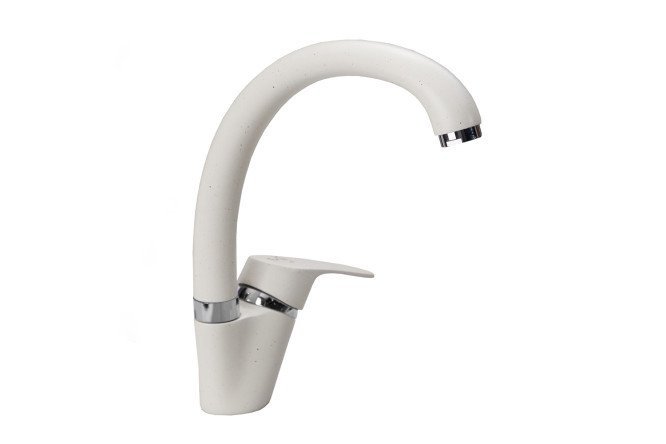 The compact LEX faucet with quartz coating and curved spout will look great with sinks made of artificial stone. The well-thought-out shape of the mixer is not only an elegant design solution, but also impeccable functionality in operation. The high swivel spout and smooth lever movement for adjusting the temperature and water pressure provide maximum comfort in washing dishes. And the durable brass base, resistant to rust and limescale, guarantees a long service life of the product.