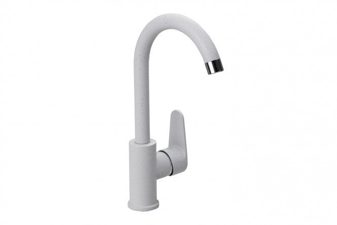 The compact LEX faucet with quartz coating and curved spout will look great with sinks made of artificial stone. The well-thought-out shape of the mixer is not only an elegant design solution, but also impeccable functionality in operation. The high swivel spout and smooth lever movement for adjusting the temperature and water pressure provide maximum comfort in washing dishes. And the durable brass base, resistant to rust and limescale, guarantees a long service life of the product.