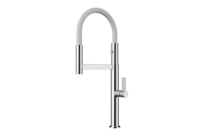 The length of the high swivel spout can be increased at will thanks to a magnetic hose. The jet/shower switch button creates additional ease of use without cluttering the Osaka body with unnecessary parts.