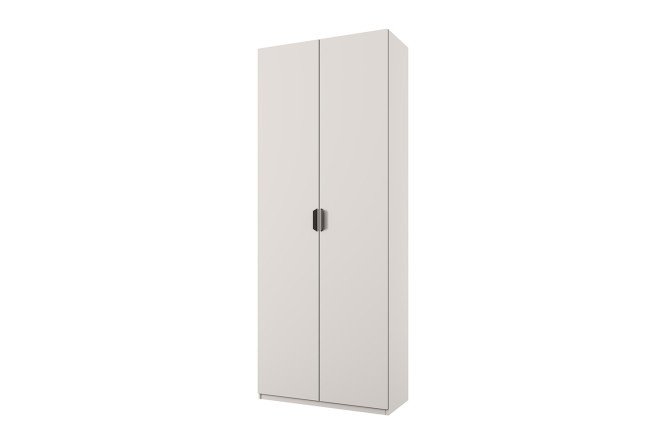 The Modern double door wardrobe has a classic design with clear line geometry. The product is highly functional; it alone is enough to organize the storage of a small family’s belongings. The closet allows you to store clothes on hangers and in stacks at the same time thanks to the presence of two different compartments. The wardrobe part is equipped with a retractable rod, which simplifies the search for the necessary clothes, while at the top there are two additional shelves where it is convenient to fold blankets, towels or bed linen. Fittings with closers ensure smooth closing of doors and no knocking.