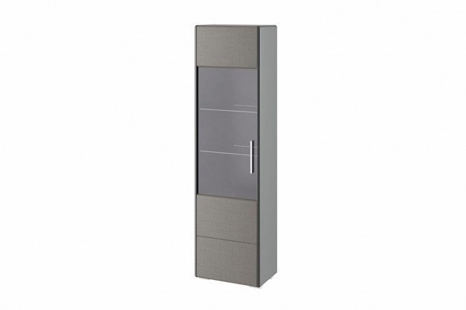 The cabinet from the Naomi collection for dishes is ergonomic and comfortable. Spacious shelves in closed and glazed compartments provide the opportunity to store a lot of dishes. Through the glass mounted in the middle part of this stylish model, you can see everything that is located inside. The robust and reliable design is designed for a long service life. The comfortable handle and high-quality fittings can withstand heavy loads. The combination of elegant shades of gray, smooth glass surface and MDF with a textile-imitating film coating allows this furniture to be used in any interior. Mirror assembly possible