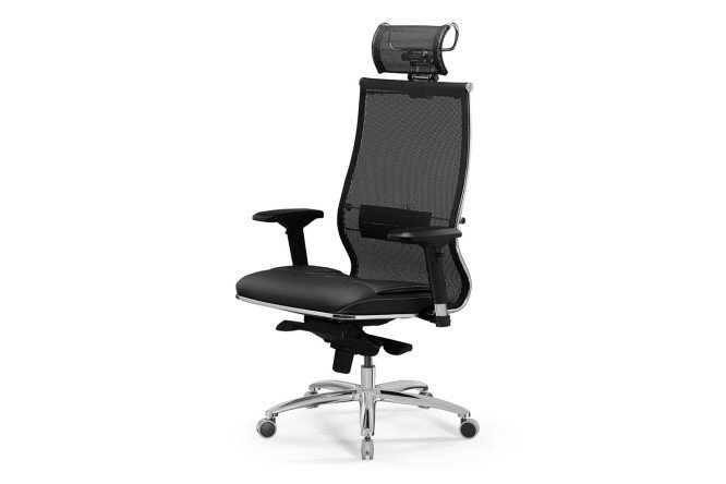 The METTA Samurai office chair is an excellent solution for creating a comfortable and stylish work environment. Its modern design, finished in black with chrome elements, adds elegance and sophistication to the interior. Made from quality materials such as mesh and faux leather, the chair combines durability and ease of care. The comfortable shape of the seat and backrest provides excellent support while working, and the ability to adjust the height and tilt of the backrest allows each user to customize the chair to their individual preferences. Comfortable armrests, which can also be adjusted, add additional comfort, allowing you to relax during long working hours. The chair is equipped with a reliable rocking mechanism and a back tilt locking system, which makes it ideal for those who value freedom of movement and the ability to change position. The five-arm chair guarantees stability and ease of movement thanks to anti-recoil rollers. The removable 3D headrest and adjustable lumbar support provide additional support, which is especially important for maintaining a healthy back. This chair is not only functional, but also aesthetically pleasing, creating a stylish atmosphere in the office or home office. The model requires assembly, which is not difficult thanks to detailed instructions.